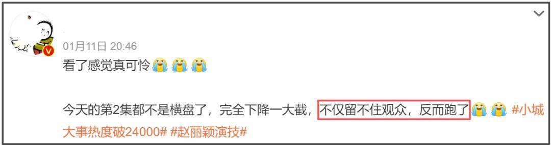 两部剧成绩对比如此明显,也难怪大家在《小城大事》收视和网播成绩都不甚理想的情况下,质疑一番女主演赵丽颖的扛剧能力,甚至有人发出感慨,疑惑她是怎么把自己从所谓扛剧变成了赶客的存在。