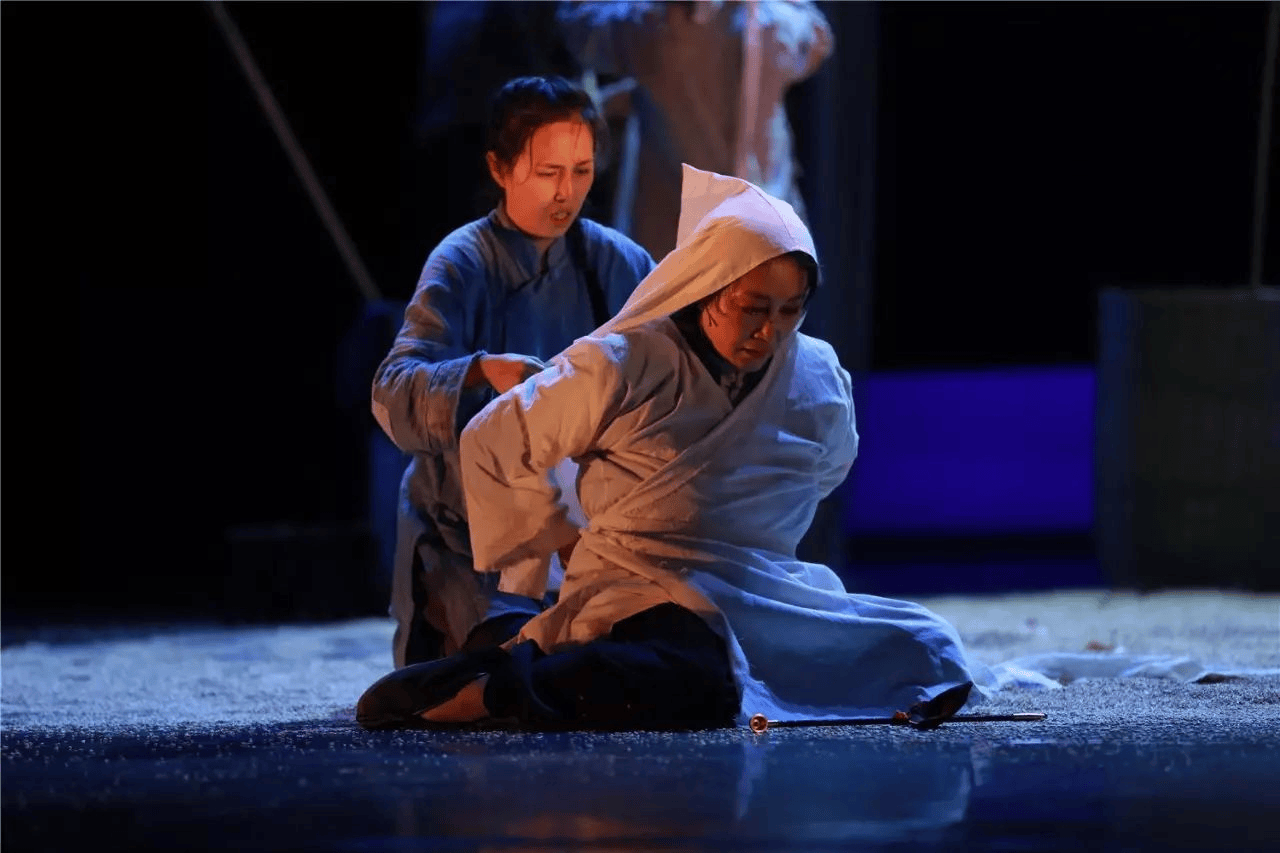 胡世淼饰演的焦母,是封建压迫的“化身”。她双目失明,却心如明镜,凭借强势与狠毒掌控着整个家庭,是封建礼教的坚定维护者。她痛恨仇虎,也鄙视金子的“不守妇道”,用各种手段刁难、监视两人,试图将所有反抗的苗头扼杀在摇篮里。但这个角色并非全然的恶毒,她的强势背后,是对儿子焦大星的保护,是对家族颜面的维护,这种复杂性让焦母的形象更加真实可感。她的存在,既是仇虎与金子悲剧的推动者,也是封建礼教摧残人性的见证者。