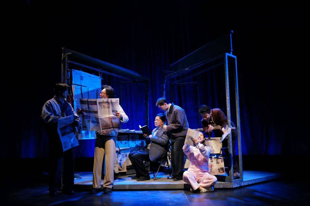《最后一间报刊亭》的表演建立在一种高密度的角色转换之上。全剧仅由6位演员完成,却需要在有限的时长内承载将近30个角色的出现与消失。这并非炫技式的分身表演,而是一种对表演精准度与节制力的考验:演员必须在最少的外在变化中,迅速切换身份,让人物在观众眼前成立,又在不被察觉的瞬间退场。