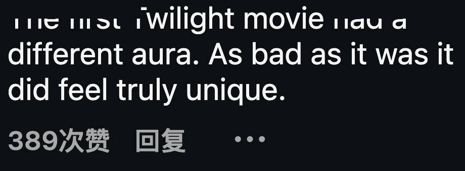 “第一部《暮光之城》有不一样的光环。再难看也觉得真的很独特。”