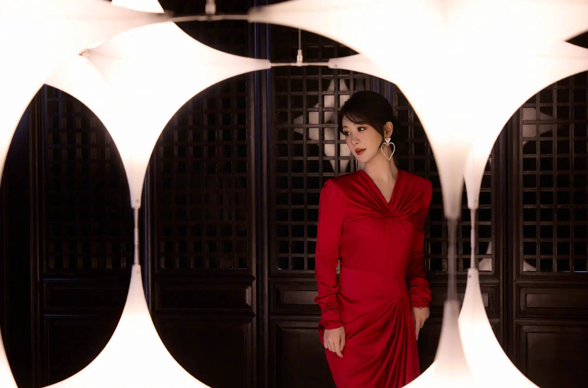 杨紫戴着心形钻饰耳环时髦吸睛。