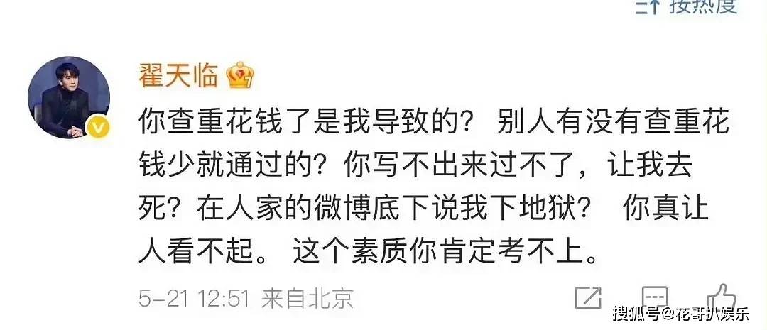 翟天临还觉得自己可委屈了,在评论区和网友互怼,诅咒网友论文肯定通不过。真是又毒又蠢了。