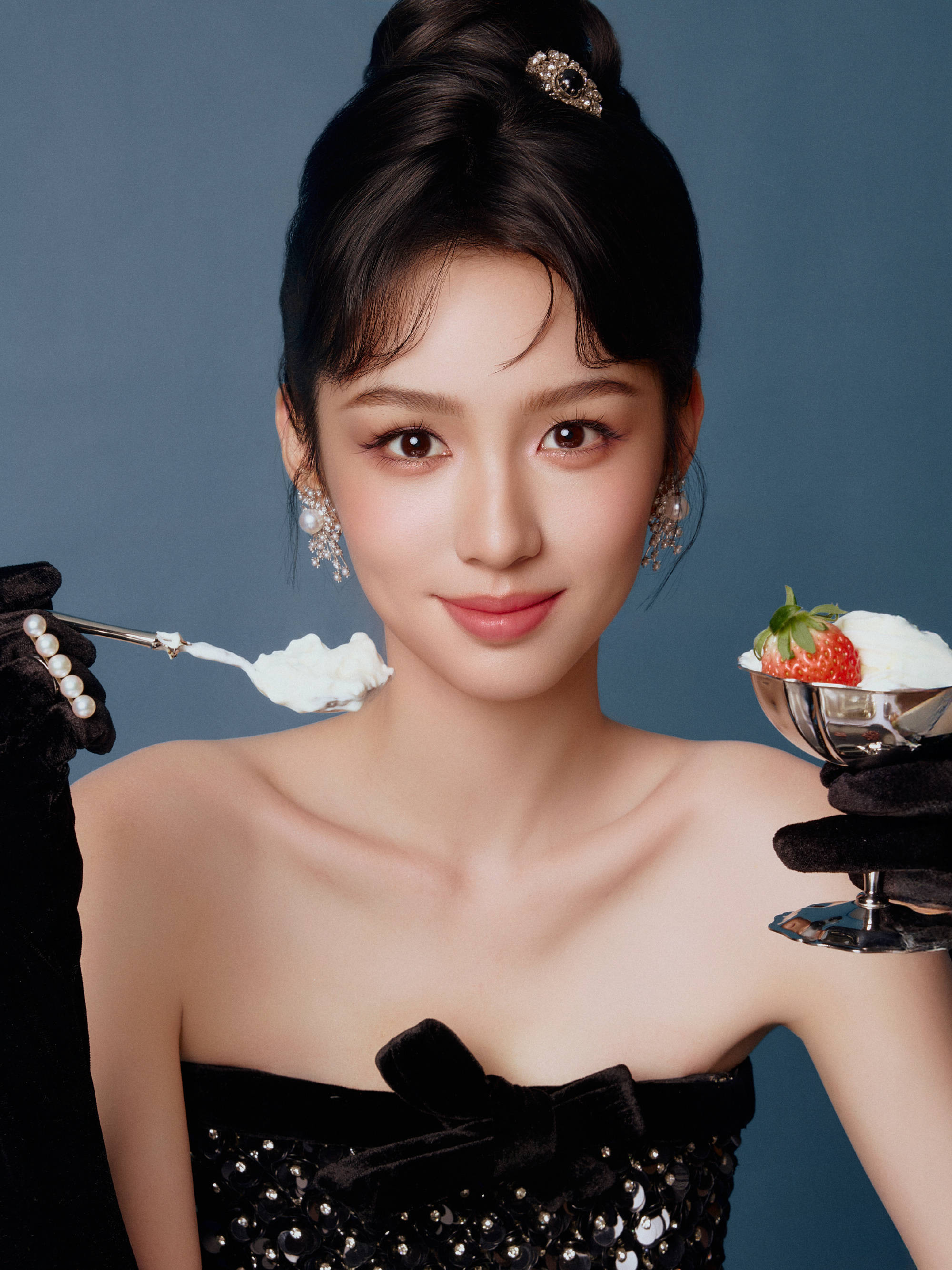 搜狐娱乐讯 16日,周也最新拍摄的写真大片释出,她穿着一袭黑色碎钻抹胸裙闪耀迷人,宛若千金大小姐,气质优雅!