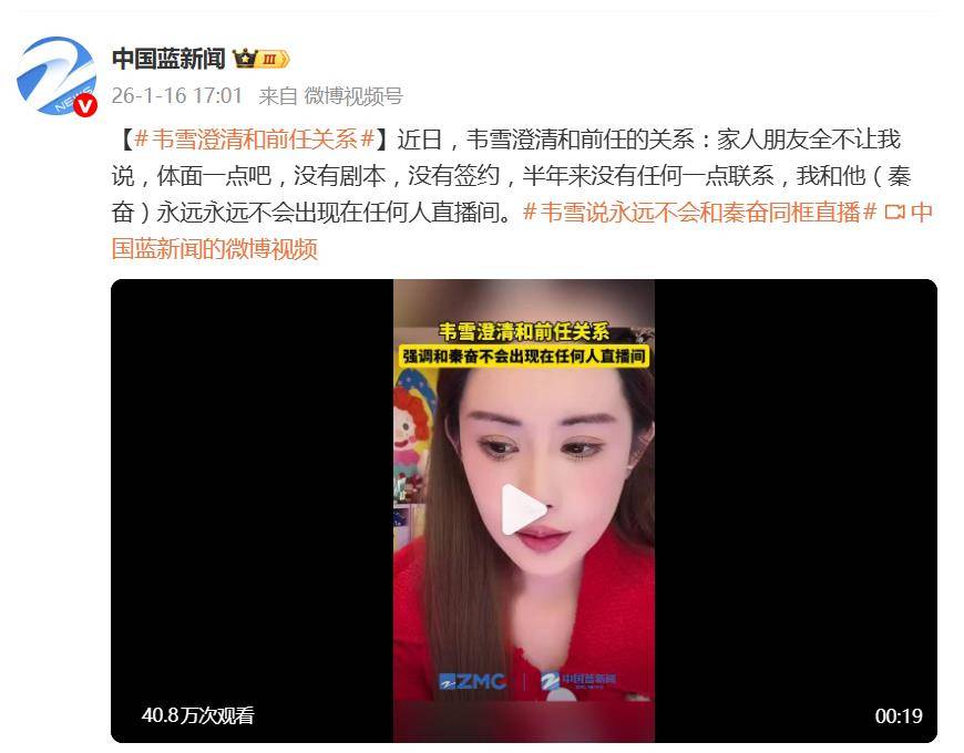镜头前的韦雪,情绪激动,措辞坚决。她划出的三条红线清晰无比:一否“剧本合作”,二证“关系断绝”(半年零联系),三立“未来禁令”(永不同框直播)。这波操作,被不少网友解读为“彻底撕掉‘秦奋前任’这个最显眼的标签”。更有评论犀利指出:“这是终于明白,靠前任话题带来的流量,终究是柄双刃剑。”