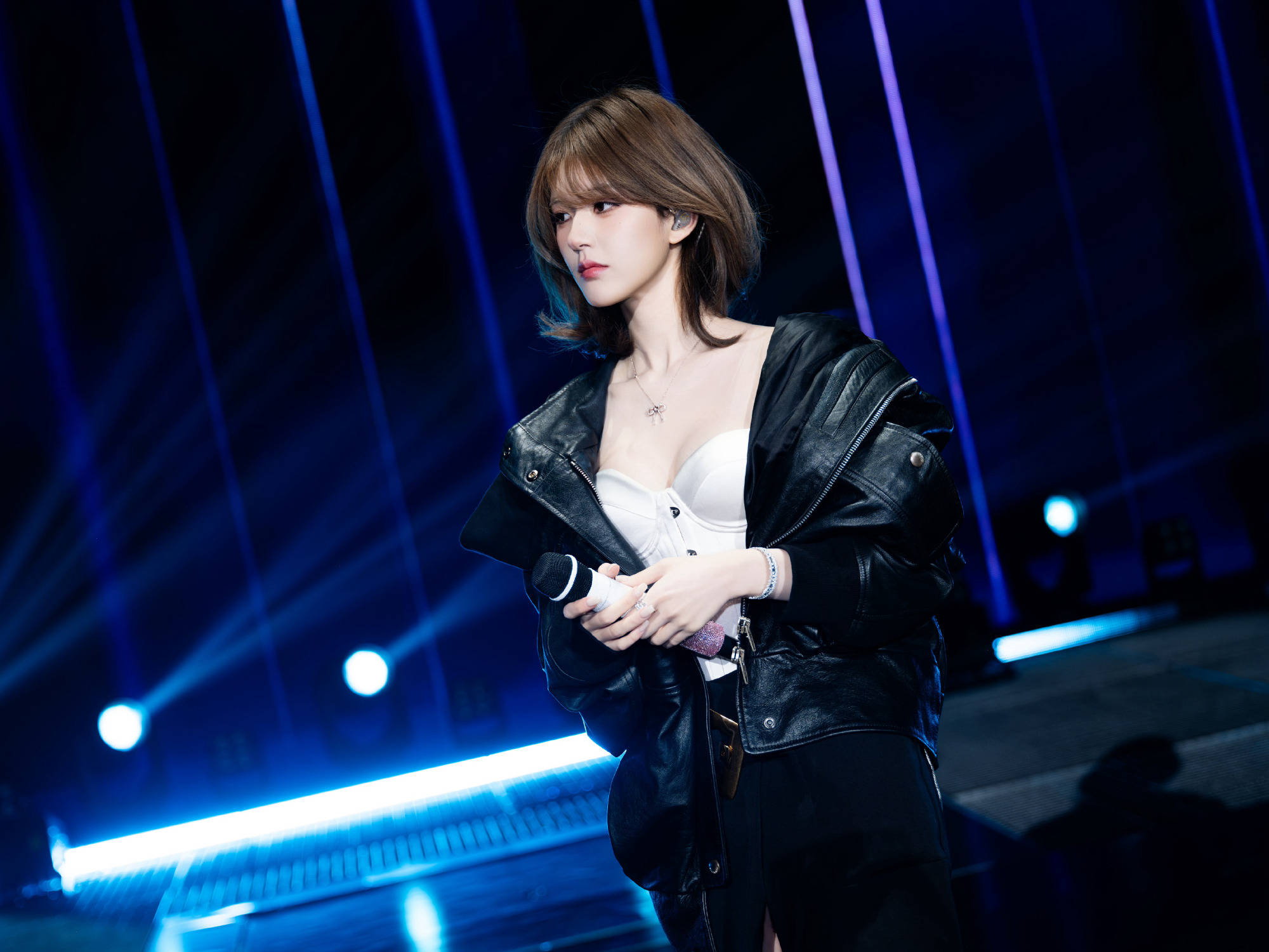 赵露思穿黑色皮衣外套,秒变性感酷girl。