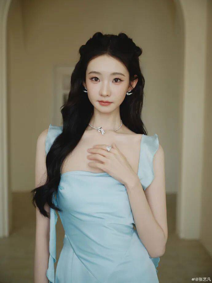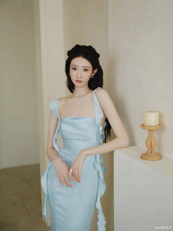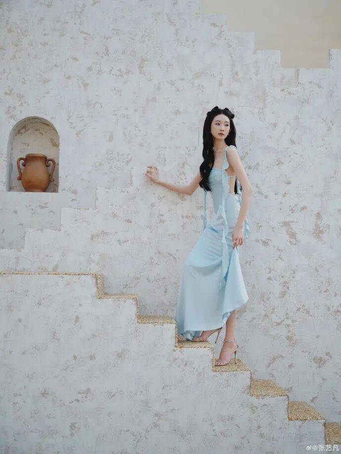 张艺凡的水蓝色的波浪裙彰显曼妙的身材比例,紧身剪裁凸显曲线,冰蓝色材质强化仙气感,绝对美得让人窒息!