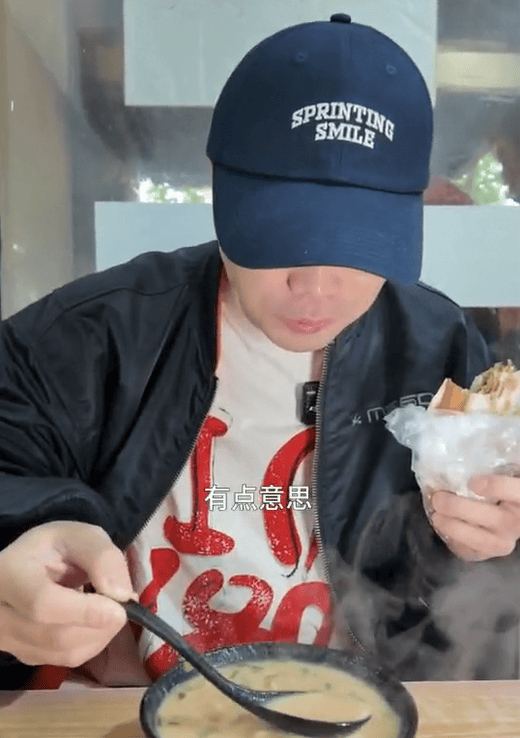 他本以为咸豆浆就是 “豆浆加盐”,看到里面泡着的油条,直呼 “有点意思”。