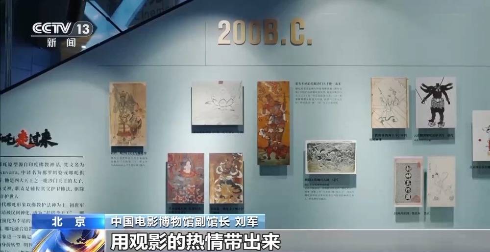 中国电影博物馆副馆长 刘军:把以前的上海美影厂曾经在我们馆藏的《大闹天宫》《哪吒闹海》这些动画片里头的手稿、文物就放在IMAX影厅的外面。用观影的热情带出来,让观众沿着这个电影追溯中国文化的优秀底蕴。