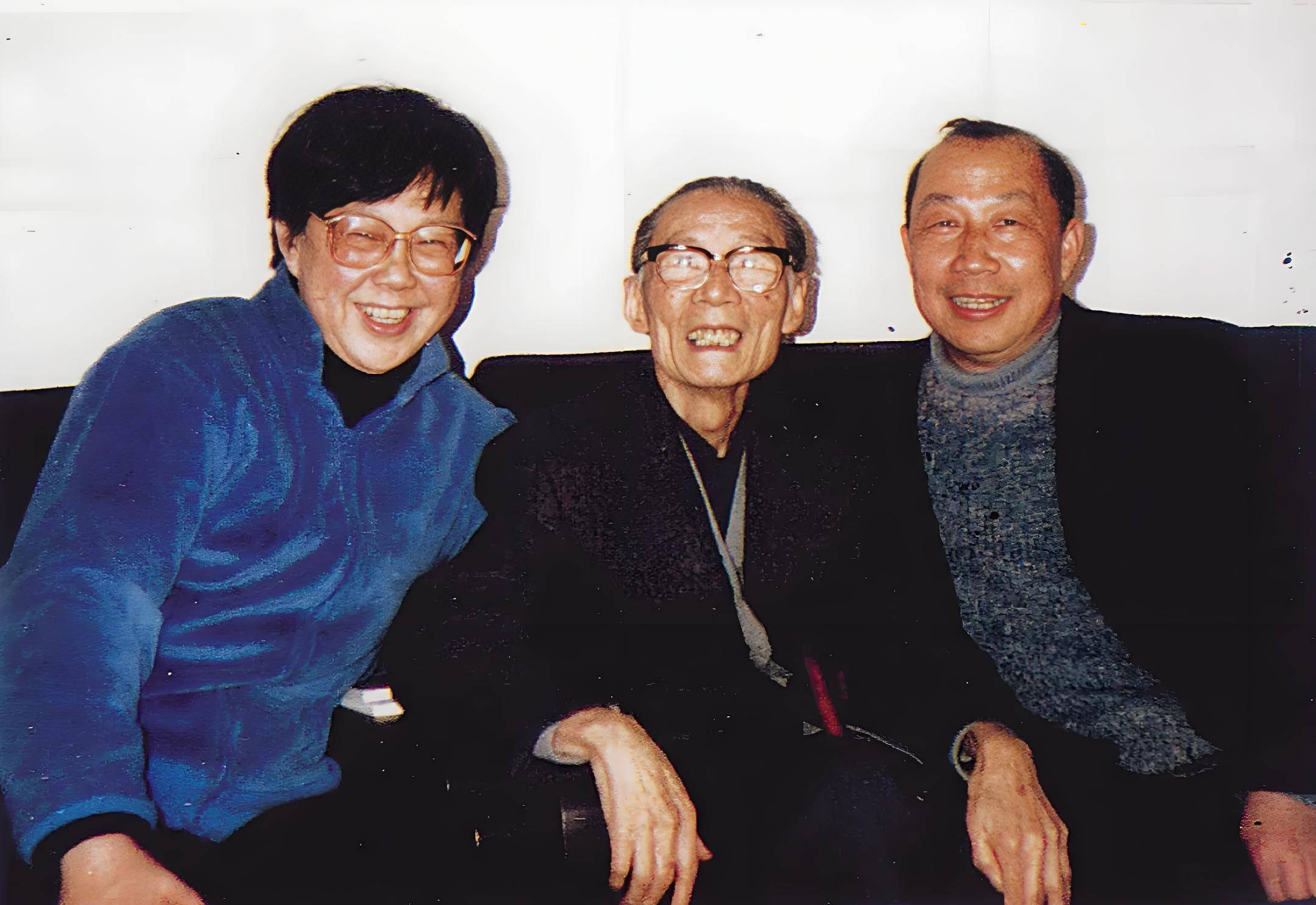 二十世纪八十年代黄会林(左一)、绍武(右一)与夏衍合影