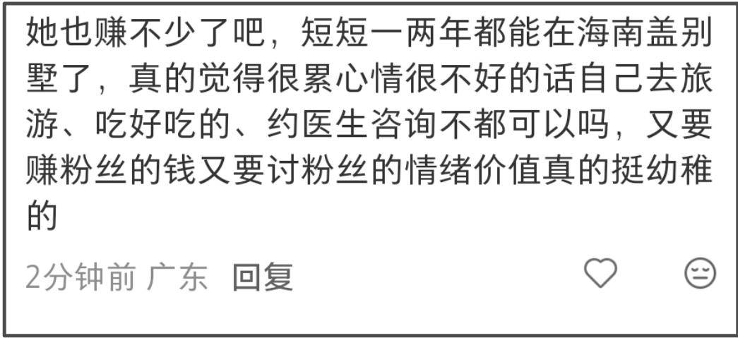 网红可以宣泄情绪,可以哭可以不笑,同样的,网友也有拒绝成为网红情绪垃圾桶的自由,普通人上网抱怨生活,被其他人刷到,评论区都可能出现无法共情的留言,一个靠着网友给予流量赚钱的网红,连几句实话都听不得?