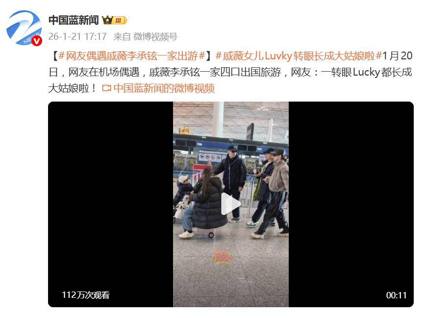 据1月21日报道,一段在机场的偶遇的视频,让戚薇李承铉一家四口又成了话题中心。网友一边感慨“一转眼Lucky都长成大姑娘了”,一边被这家人“复制粘贴”般的长相和默契分工给秀了一脸。