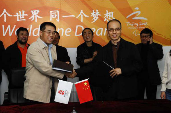 2007年10月,北京奥运会开闭幕式工作部部长王宁代表奥组委与陈其钢在签约仪式上。