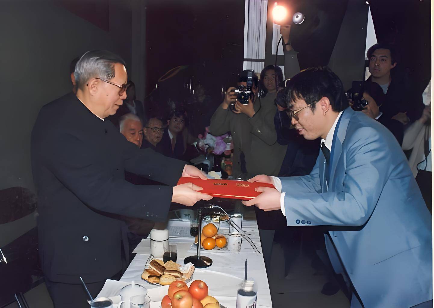 方毅为棋圣聂卫平颁发证书