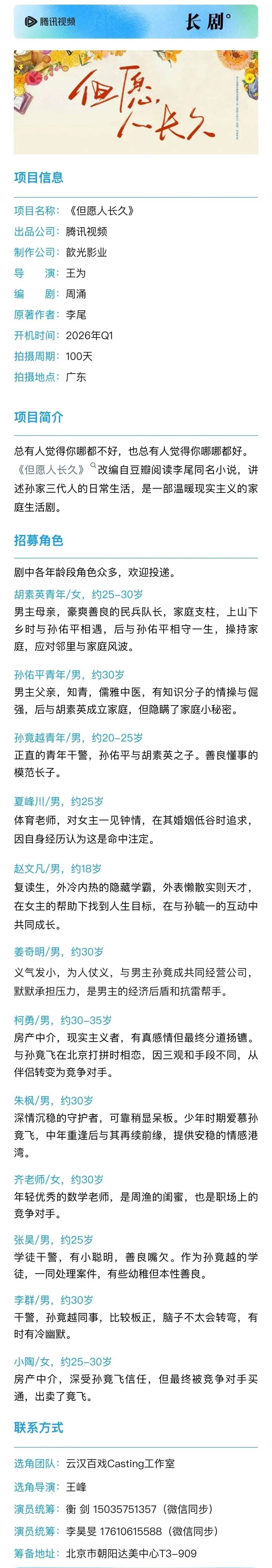 《但愿人长久》改编自豆瓣阅读李尾同名小说,讲述孙家三代人的日常生活,是一部温暖现实主义的家庭生活剧。