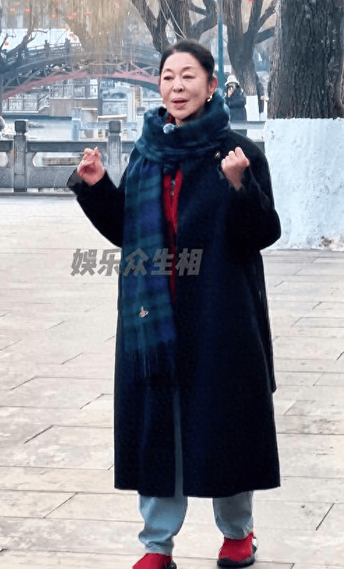 现场照片显示,她的发顶已经有点泛白,面部的皱纹在自然光下清晰可见,下巴略有前突。但倪萍似乎并不介意这些变化,妆容很轻,气色却显得红润。她黑色大衣的长度刚好过臀,内搭的红色衬衣配上蓝色丝绒丝巾,为整体造型增添了些温暖的色彩。虽然没有舞台的华丽背景,她一开口送出的新年祝福,仍然让围观的游客瞬间联想到春晚的氛围——那种沉稳、带力量的声音依旧熟悉。