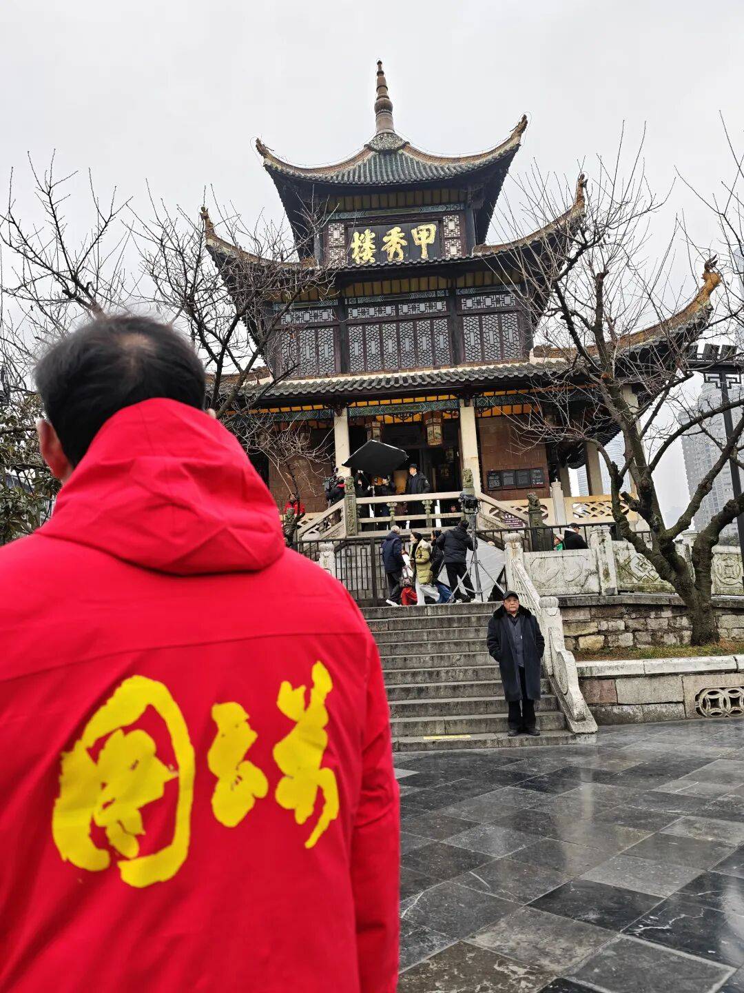 拍摄现场,剧组特意保留了阁内原陈设,最大程度保持历史原貌。贵阳的寒风 穿过古老的窗棂缝隙时发出的呜咽声,也为剧组拍摄增添了别样的质感,演员们身着符合时代的厚实衣衫,在镜头前或坐或立,诵读声与辩论声低沉而清晰,让人仿佛穿越回那个战火纷飞的年代。