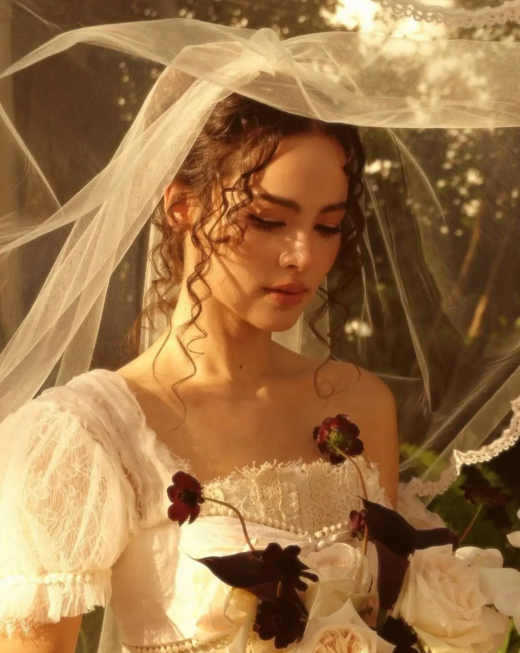 Yaya深林背景下造型复古又吸睛。