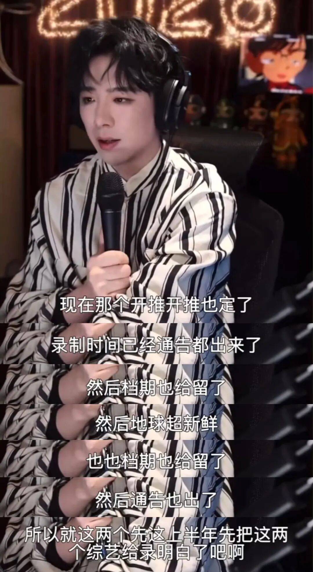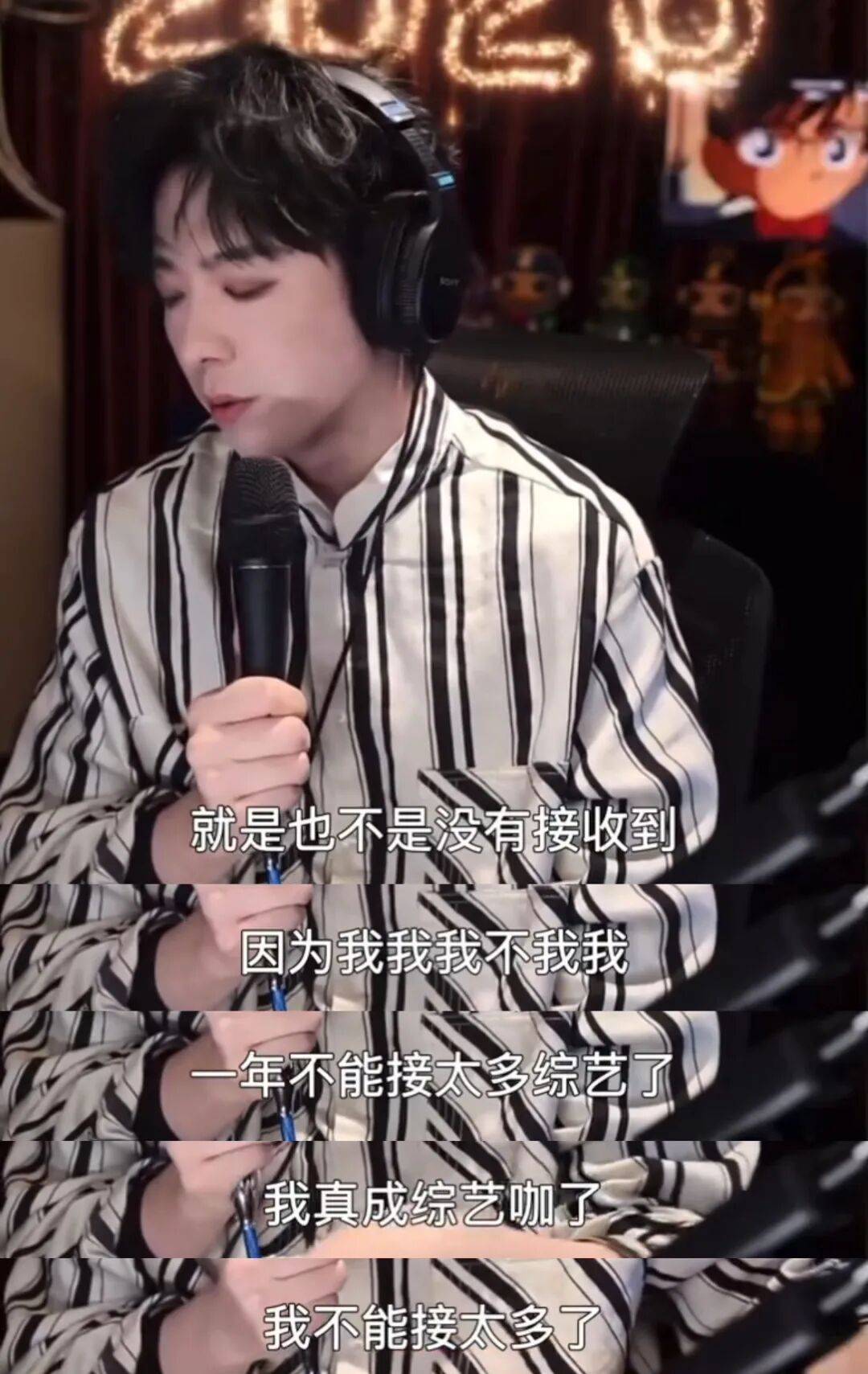 他进一步解释需控制全年综艺数量:"一年不能接太多综艺了,我真成综艺咖了",坦言过度曝光综艺可能模糊其歌手与演员的专业身份定位。