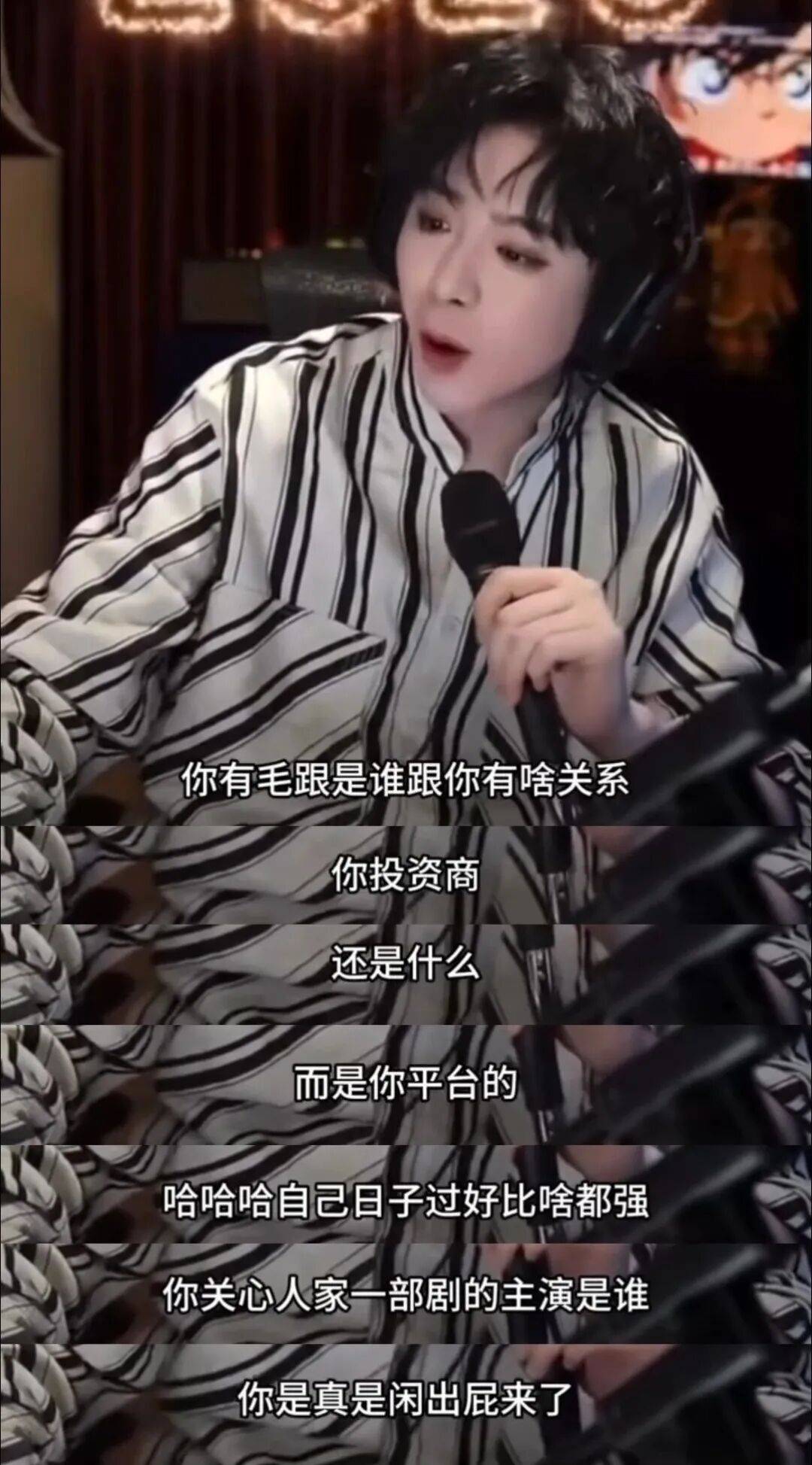 直播中,他调侃部分网友过度关注选角的行为,直言:“你关心人家一部剧的主演是谁,你是真是闲出屁了。”