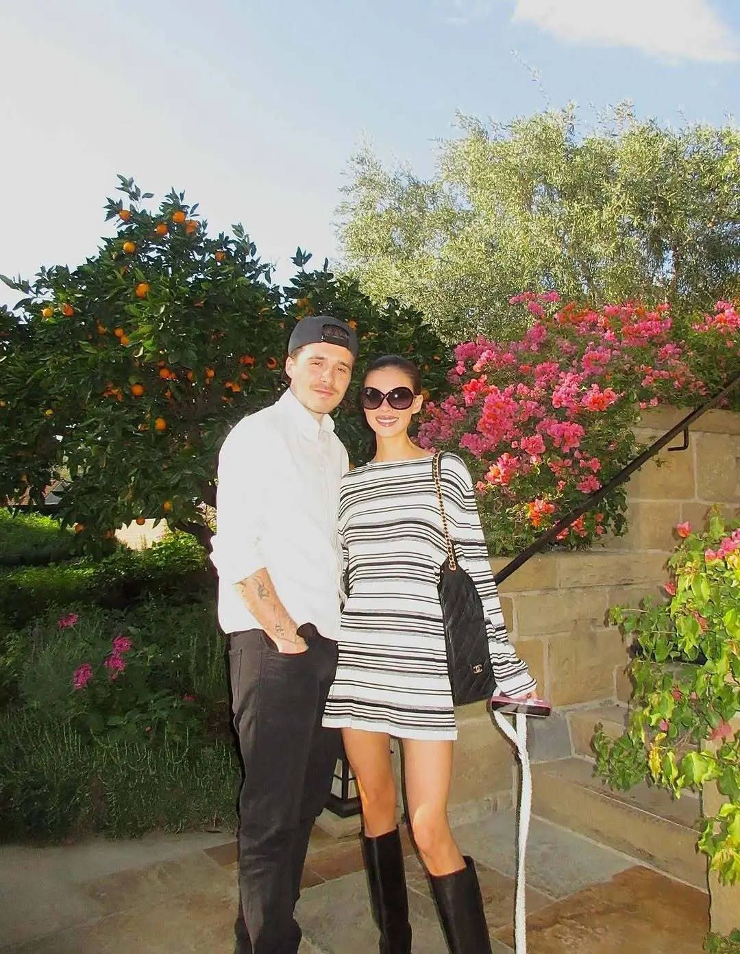 贝克汉姆大儿子布鲁克林与老婆在饭桌上亲吻,感情甜蜜极了。