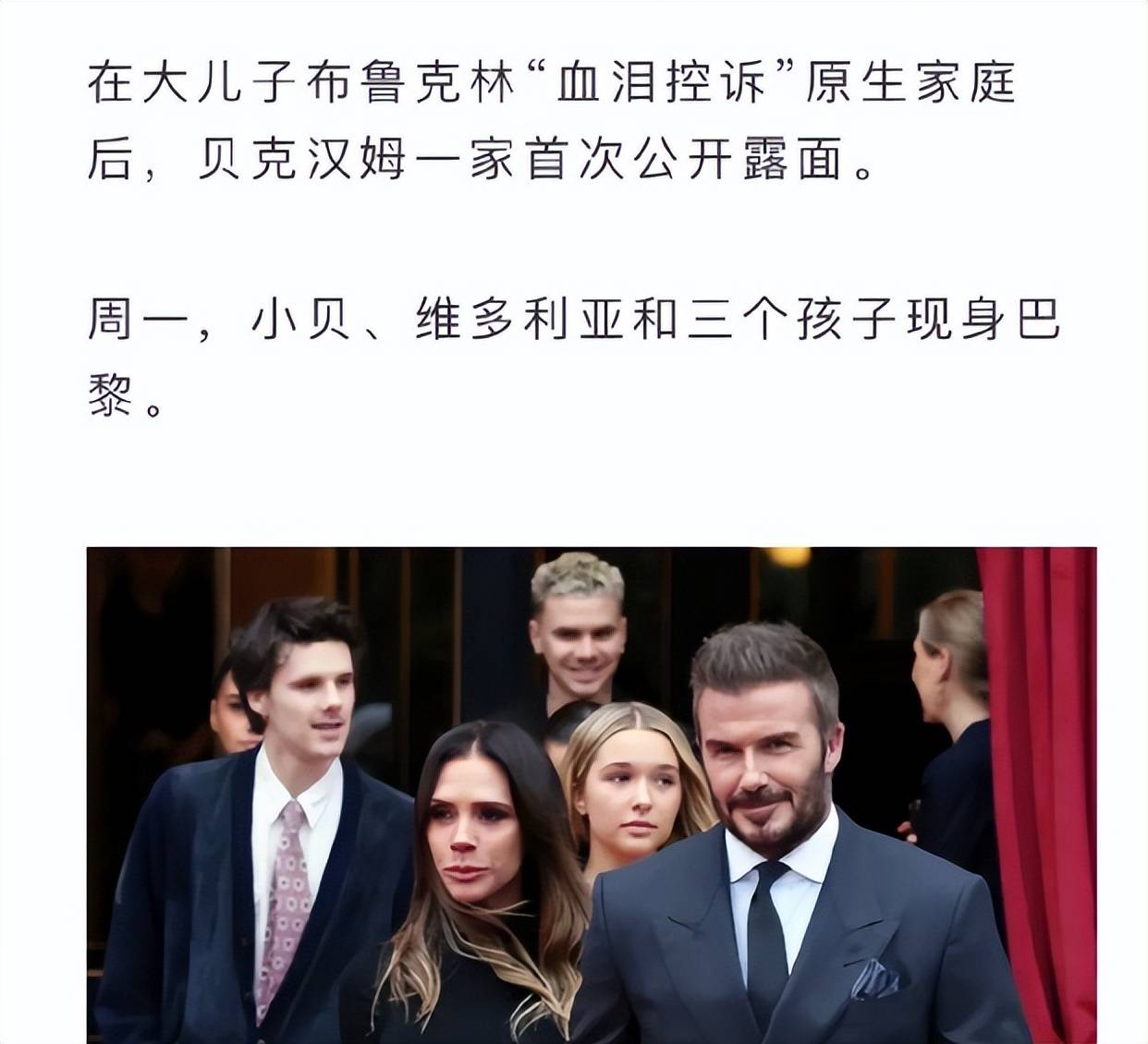 小贝一家合影看出来全家都有心事的感觉