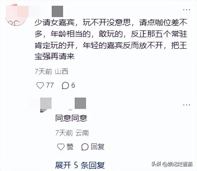 都在说少请女嘉宾,觉得女嘉宾玩不开,看着没意思。