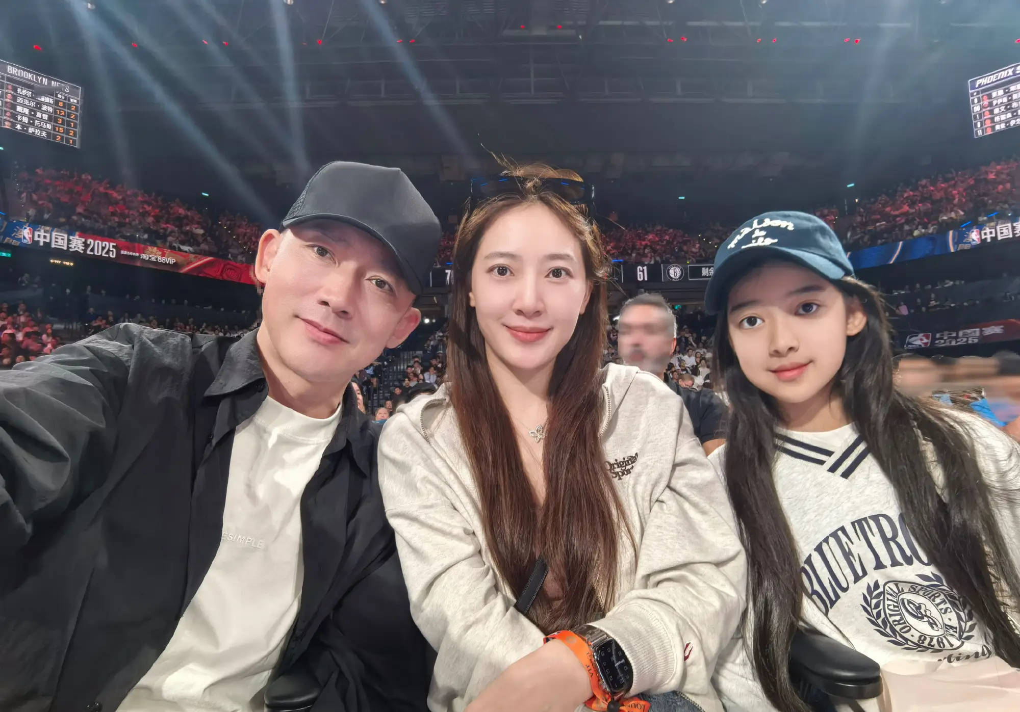女儿抱着爸爸聂远的手臂拍照,安全感满满。