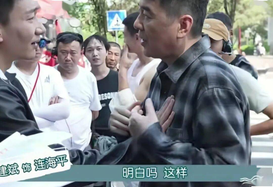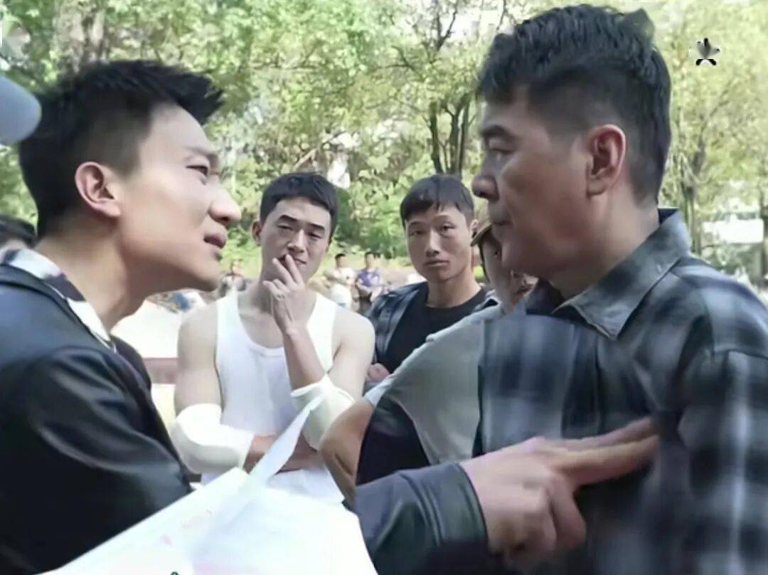 剧情是这样的,社会小混混跟陈建斌叫嚣,用三根手指推搡陈建斌。
