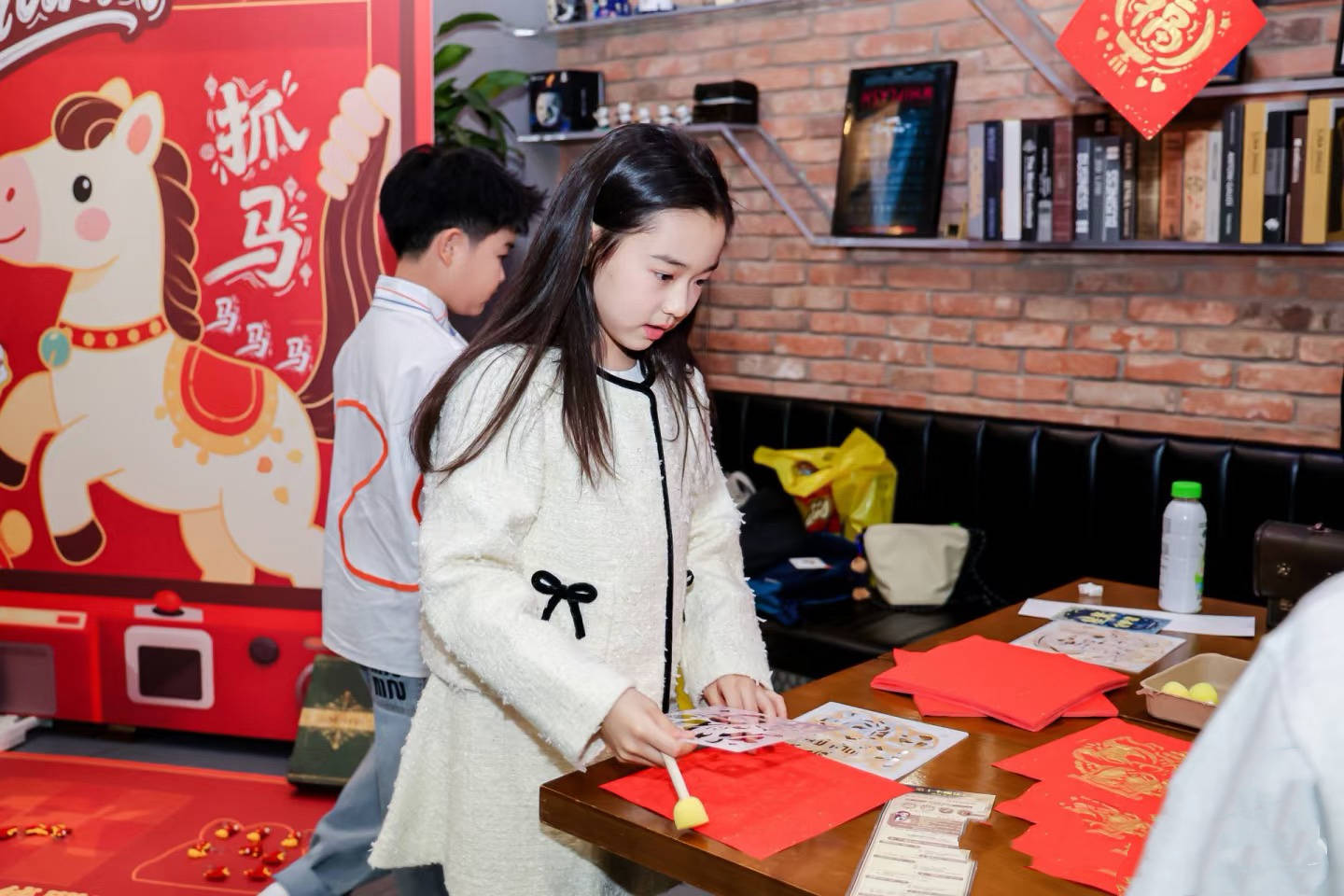 在朵朵生日宴上,安排了很多有趣的环节。朵朵和小酒窝一起拓印,俩孩子都很认真,尤其是小酒窝动作小心、颇有大家闺秀的气质。