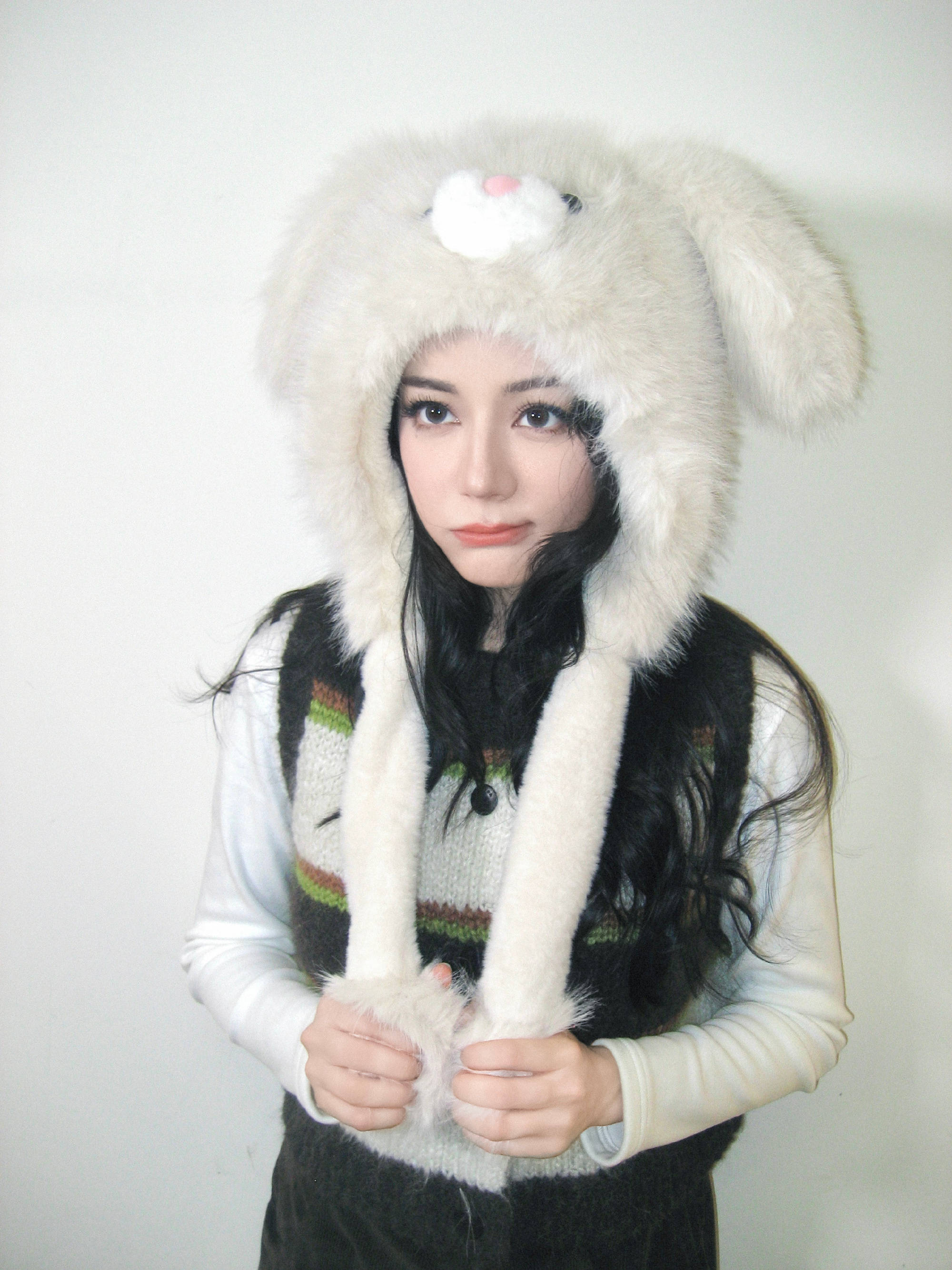 此前,迪丽热巴在社交平台上晒出自己戴着毛茸兔耳帽的美照。