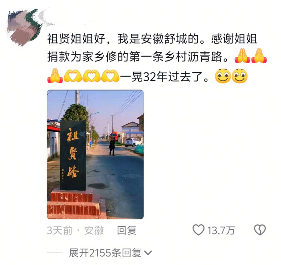 新年伊始,王祖贤接连开通多个社交平台账号,让很多网友直呼惊喜,有人在评论区回忆自己最难忘的影视角色,有人好奇她是否会回归演艺圈,还有人晒出了安徽省六安市舒城县的“祖贤路”照片。