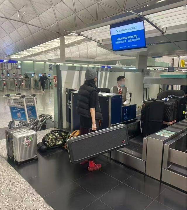 她在有条不紊地处理登机事宜,目之所及看到了吉他、多个行李箱、背包等东西。由此推测,她这次去有可能会留在当地过春节了,毕竟三个儿子都在。