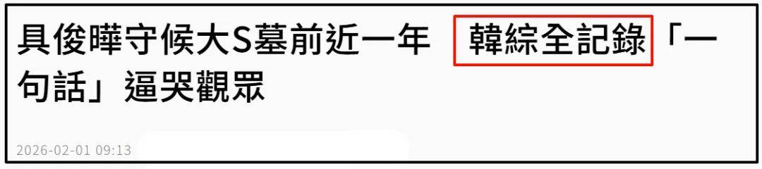 结果就在大S去世一周年前几天,韩媒曝光具俊晔参加了韩综,这一年的扫墓祭拜,全在节目镜头里。