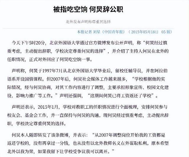 2015年,北京外国语大学副教授乔木就实名举报他“吃空饷”——保留学校编制却多年未上班仍领工资。