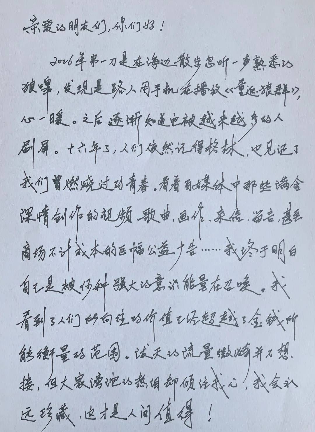 2月2日,李微漪发布手写信,称保护站建立后,她的使命已经完成。但看到因为在流量和热度的催化之下,湿地保护区和远牧、扎西家、小屋旁、狼山下......甚至动物们的洞穴外涌来一批又一批直播网红,有拍视频的,有想建风景区的,还有想开农家乐的。“本该专心于野外巡护、科学监测和紧急事件处理的保护区工作人员却不得不疲于应对大量的电话、留言、信件。”