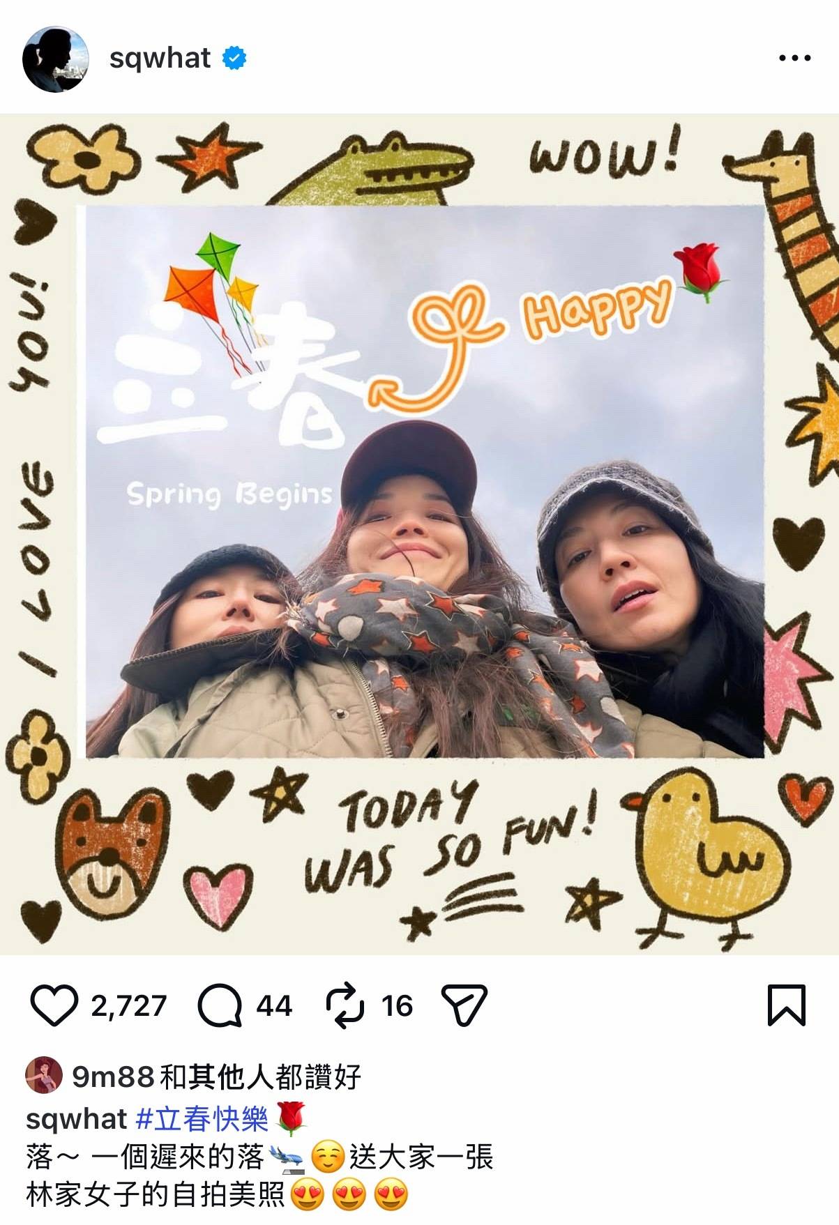 舒淇与林心如、林熙蕾同框合影。