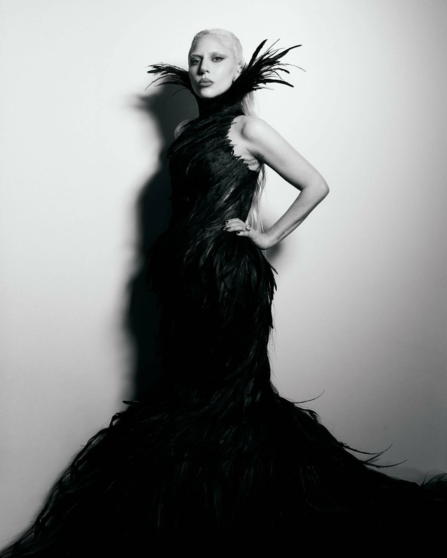 搜狐娱乐讯 近日,Lady Gaga释出黑白写真,穿黑羽毛裙衬得冷艳霸气,贴头皮金发造型吸睛。