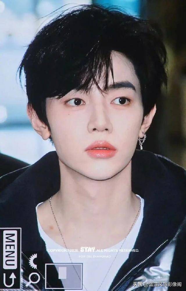章昊的清冷眉眼与这套亮面潮服完美契合,抬手挥手、轻触耳机的瞬间,自带舞台王者的从容气场,没有刻意的摆拍,却每一帧都像时尚大片。