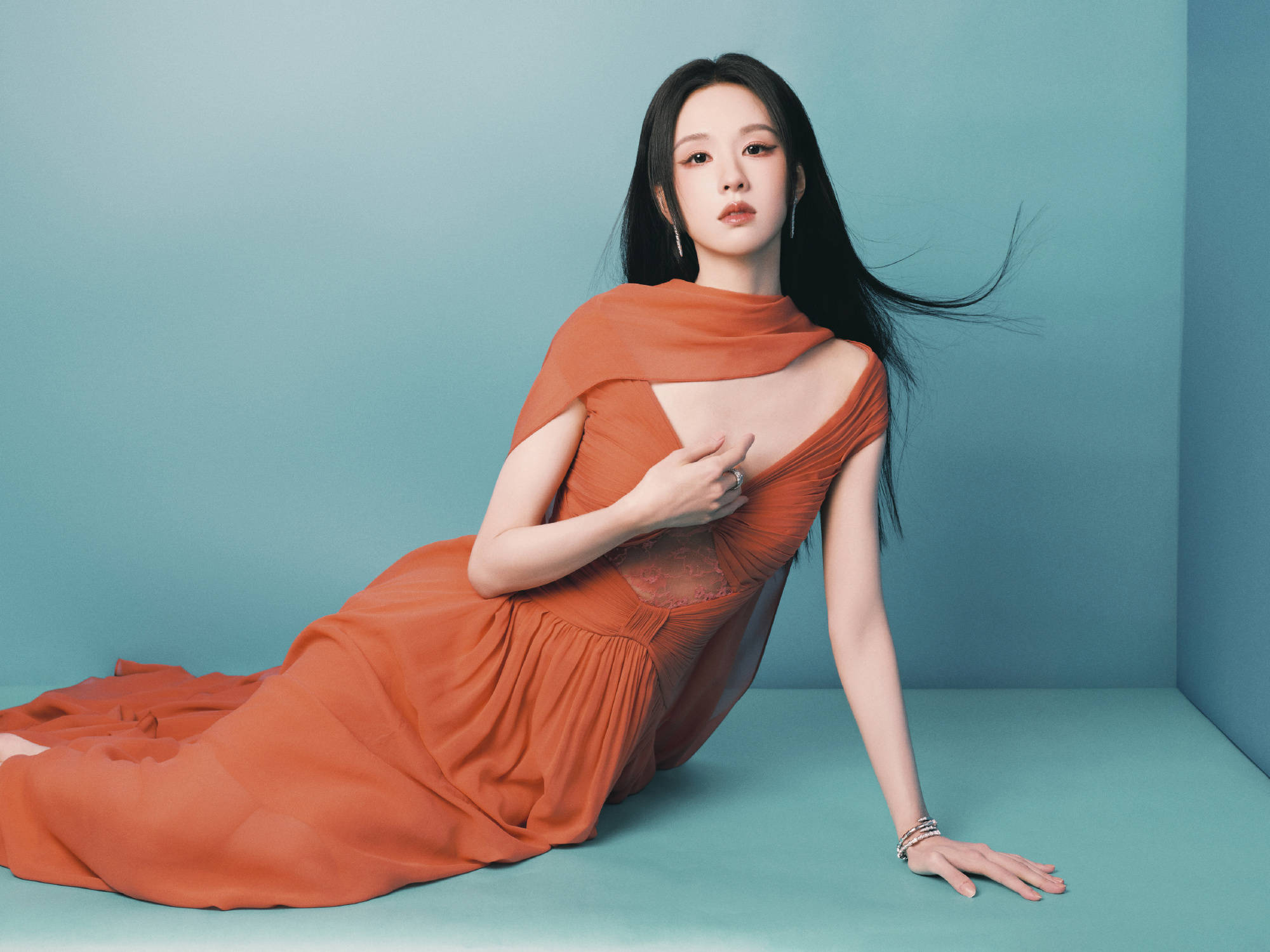 陈都灵钻饰耳坠在光下熠熠生辉。