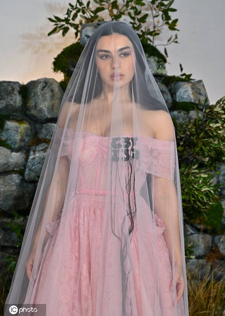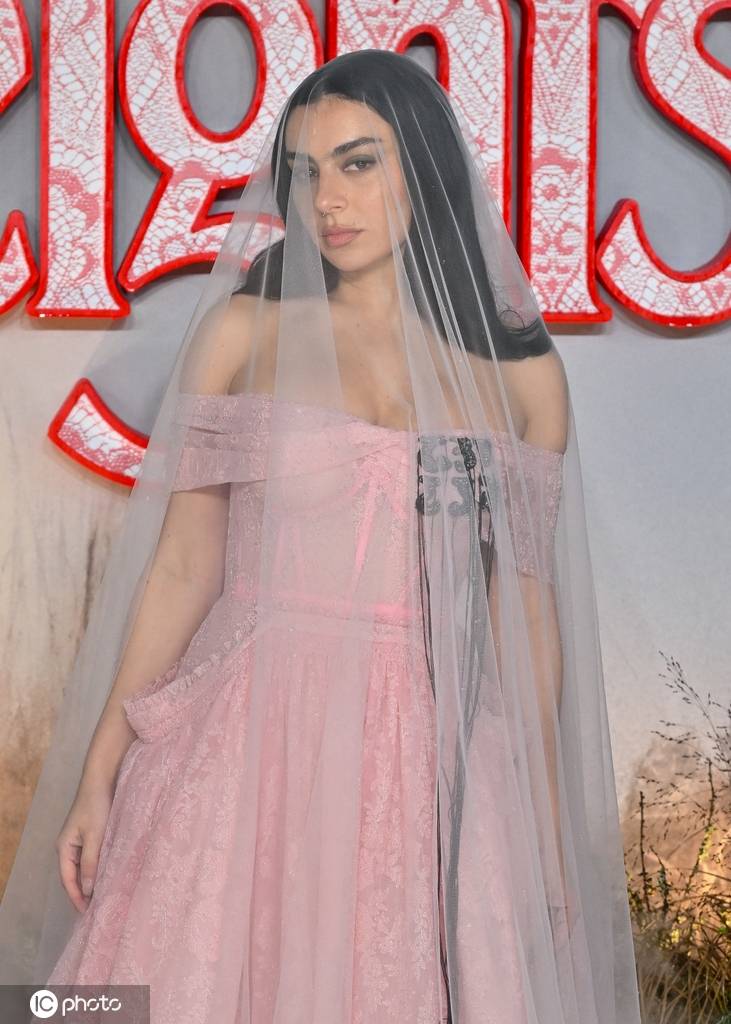 当地时间2026年2月5日,英国伦敦,查莉·XCX粉色婚纱造型亮相电影《呼啸山庄》(Wuthering Heights)伦敦首映礼。