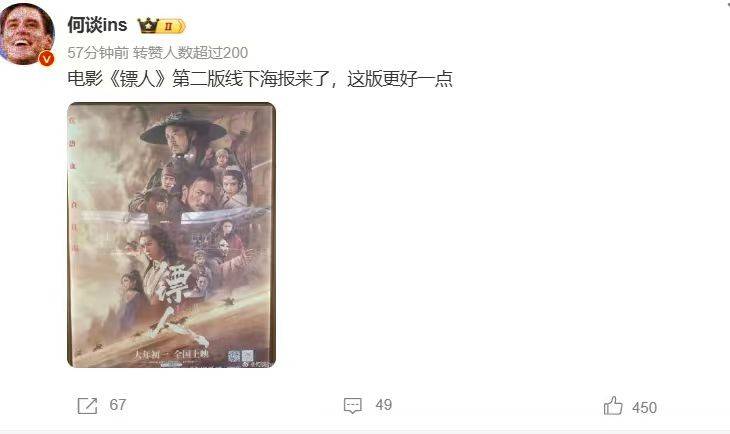 只是《镖人》不给力的可不只是数据,现在亮相院线的海报也被吐槽得格外惨,一点布局审美都看不出来,也没有设计加工,只是粗暴的堆砌。