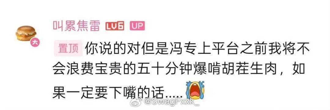 “你说的对但是冯专上平台之前我将不会浪费宝贵的五十分钟爆啃胡茬生肉,如果一定要下嘴的话”