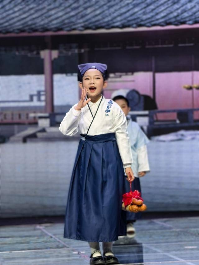 其中,语言类节目格外丰富,既有传统的相声、小品,也有创新的朗诵和课本剧,五个节目各具特色,从不同角度展现了中华优秀传统文化魅力和新时代少年儿童的精神风貌。创意小品《假如押韵是一种病》妙趣横生;朗诵节目《剪出一个大中华》充分展现了剪纸艺术与诗歌的完美融合;孩子们用稚嫩而坚定的声音,讲述了气势磅礴的《江河里的中国》;相声《创新学习法》,巧妙地将传统相声技法与现代教育话题相结合;而课本剧《自相矛盾》则用经典寓言焕发新生,既保留了寓言的哲理内核,又加入了符合当代儿童审美的元素。