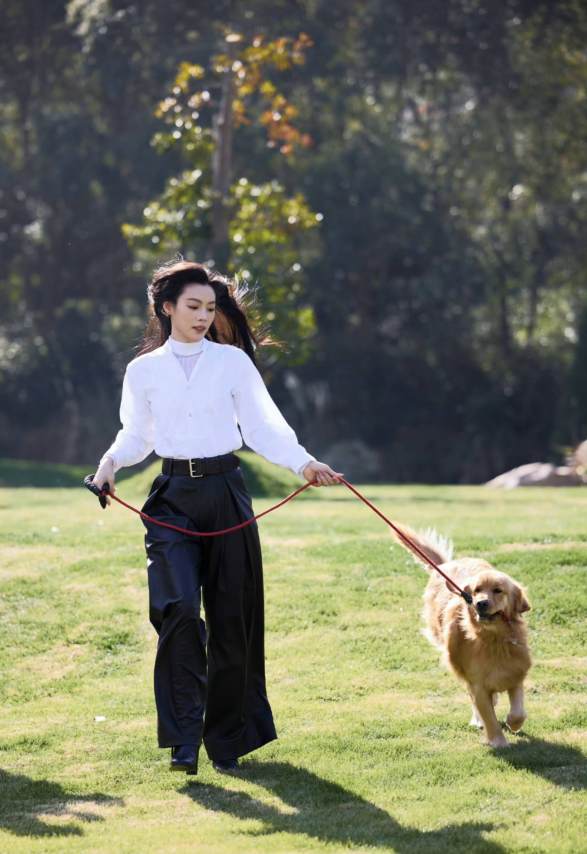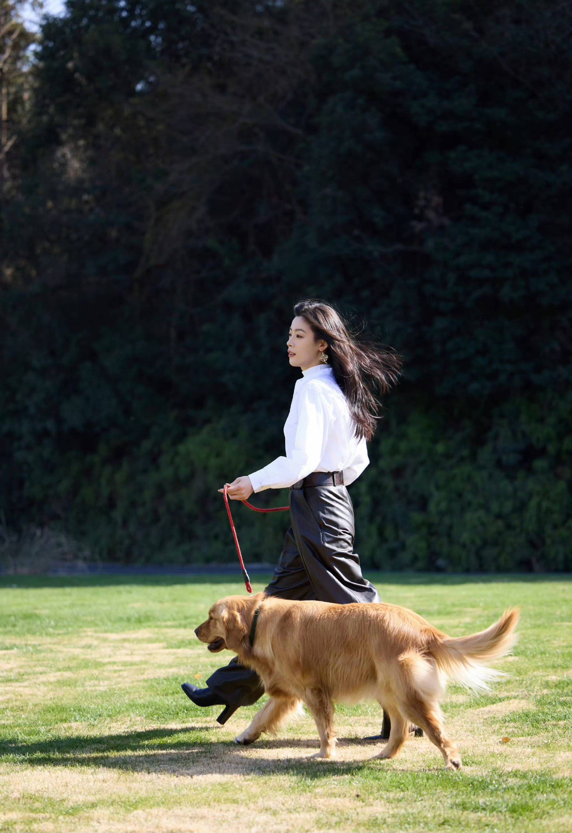 搜狐娱乐讯 近日,陈丽君一组户外写真曝光,白衬衫配黑皮裤遛金毛,随性又飒爽。