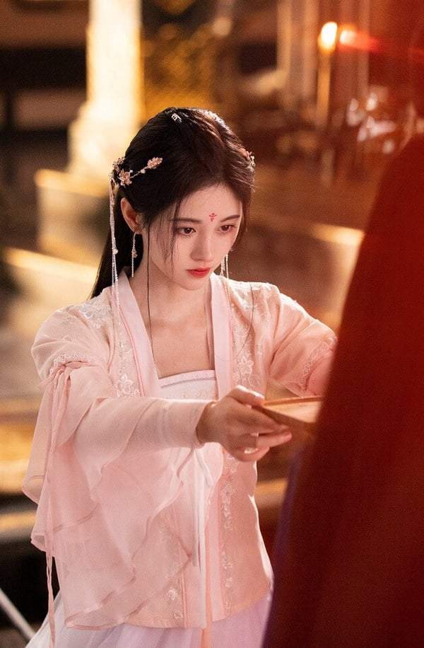 杨紫在《沉香如屑》的造型都很粉嫩,除了额间的粉色花钿外,也有过一套眼角的花瓣妆,都很好看。