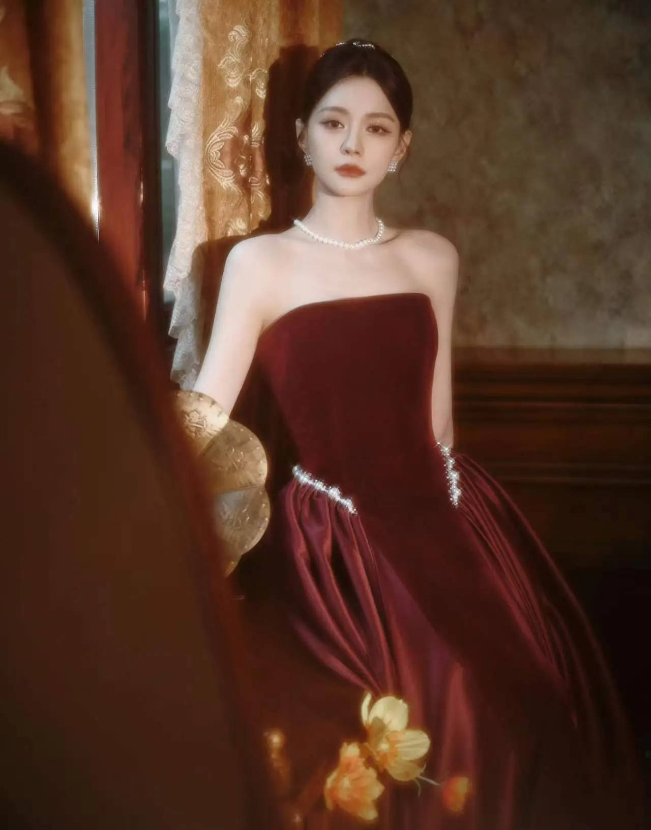 搜狐娱乐讯 近日,沈梦辰一组复古写真释出。图中,她身着酒红丝绒礼裙,搭配珍珠配饰,优雅又贵气。