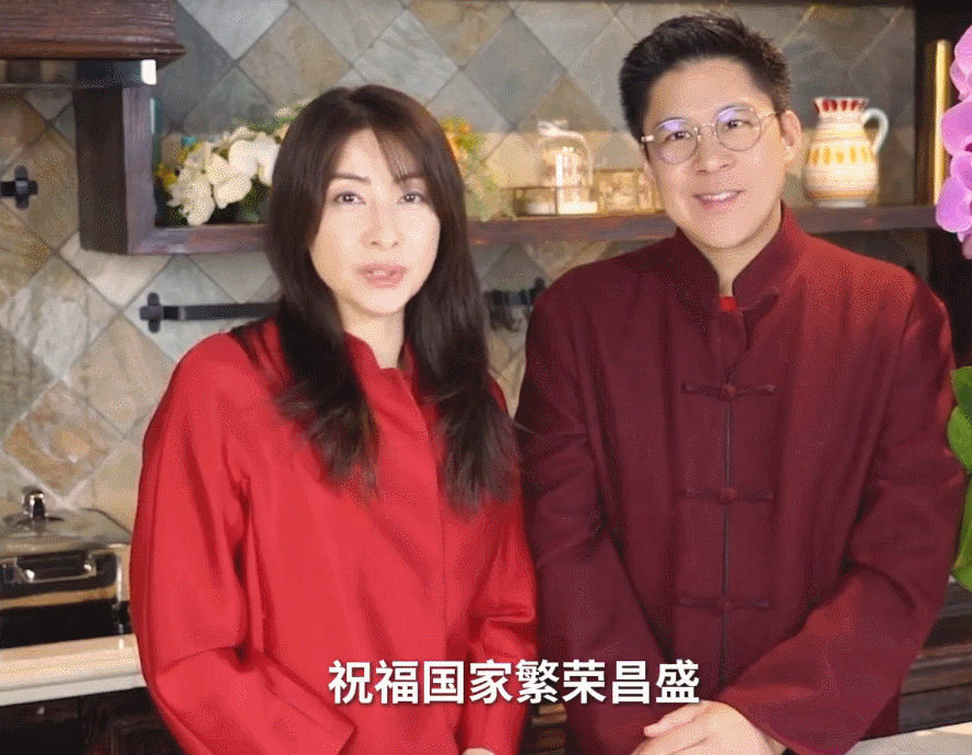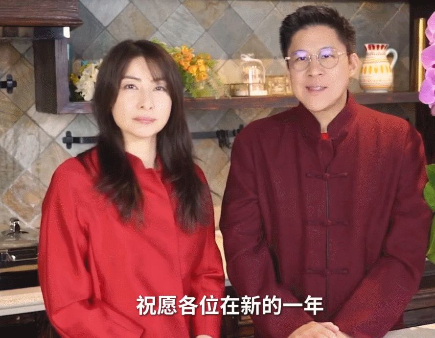 霍启刚、郭晶晶一起向大家拜年,笑容灿烂,心情大好。