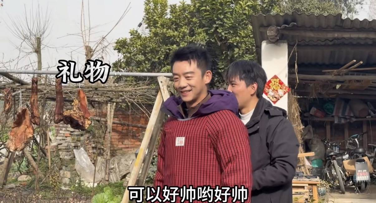 郑恺一大早就来了,村民们开着拖拉机去镇上接他。郑恺穿了一件紫色连帽外套、内搭是棕色毛衣,配了牛仔裤,清爽利落显得很年轻。