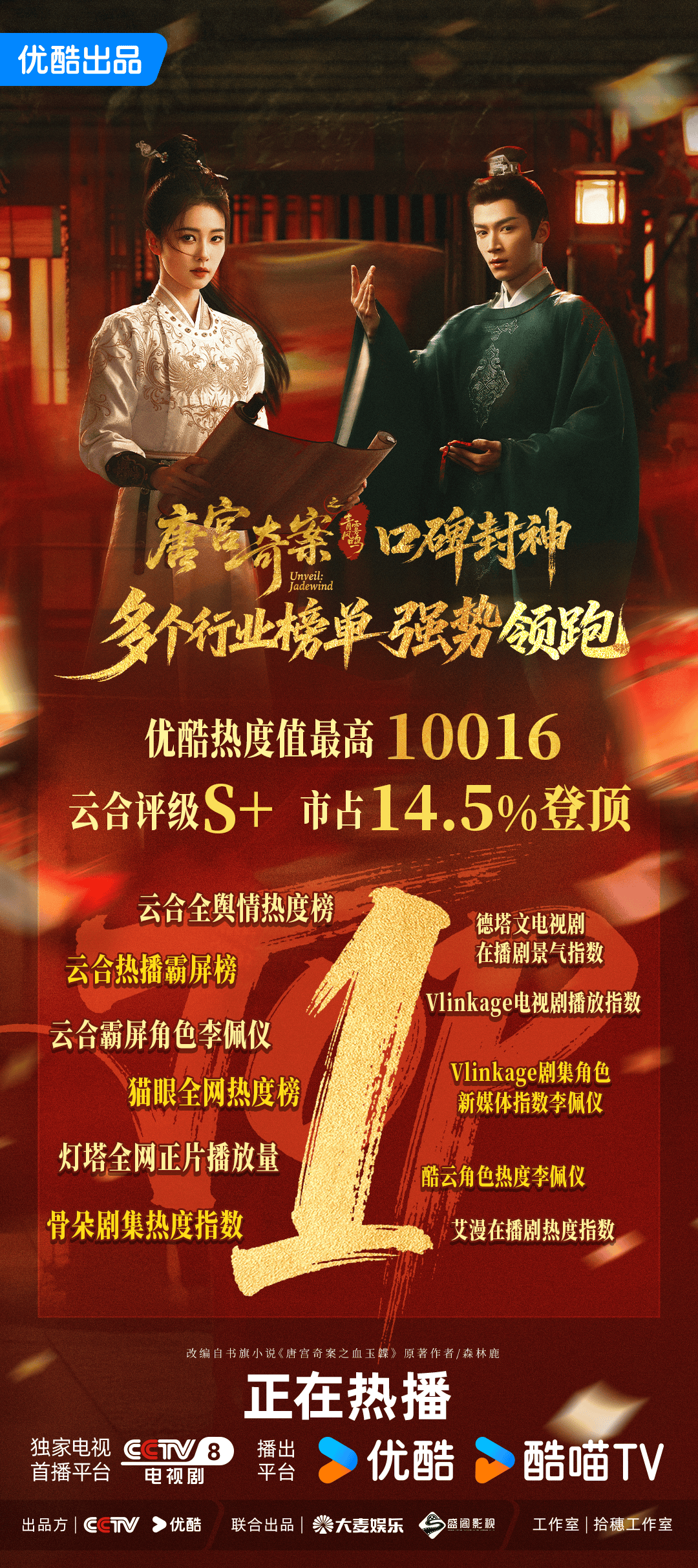 继《琉璃》《少年歌行》《暗河传》后,《唐宫奇案》是尹涛与优酷合作的第四部剧集,目前已经创下部部热度破万的好成绩。谈及与平台的合作历程,尹涛表示,他与平台一向秉持着为好内容全力以赴的共识,力求在每一部作品里都做到创新表达,也更加关注观众的真实反馈,会吸收合理意见,反哺到接下来的创作中。