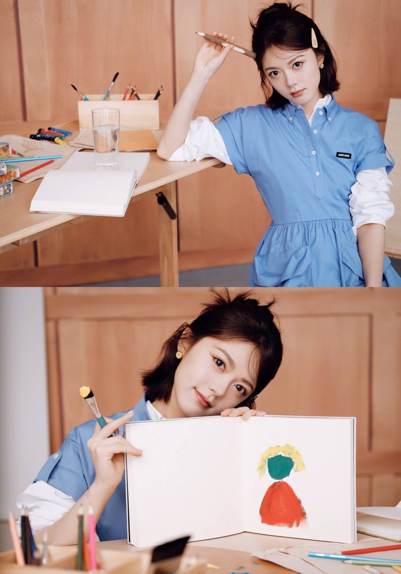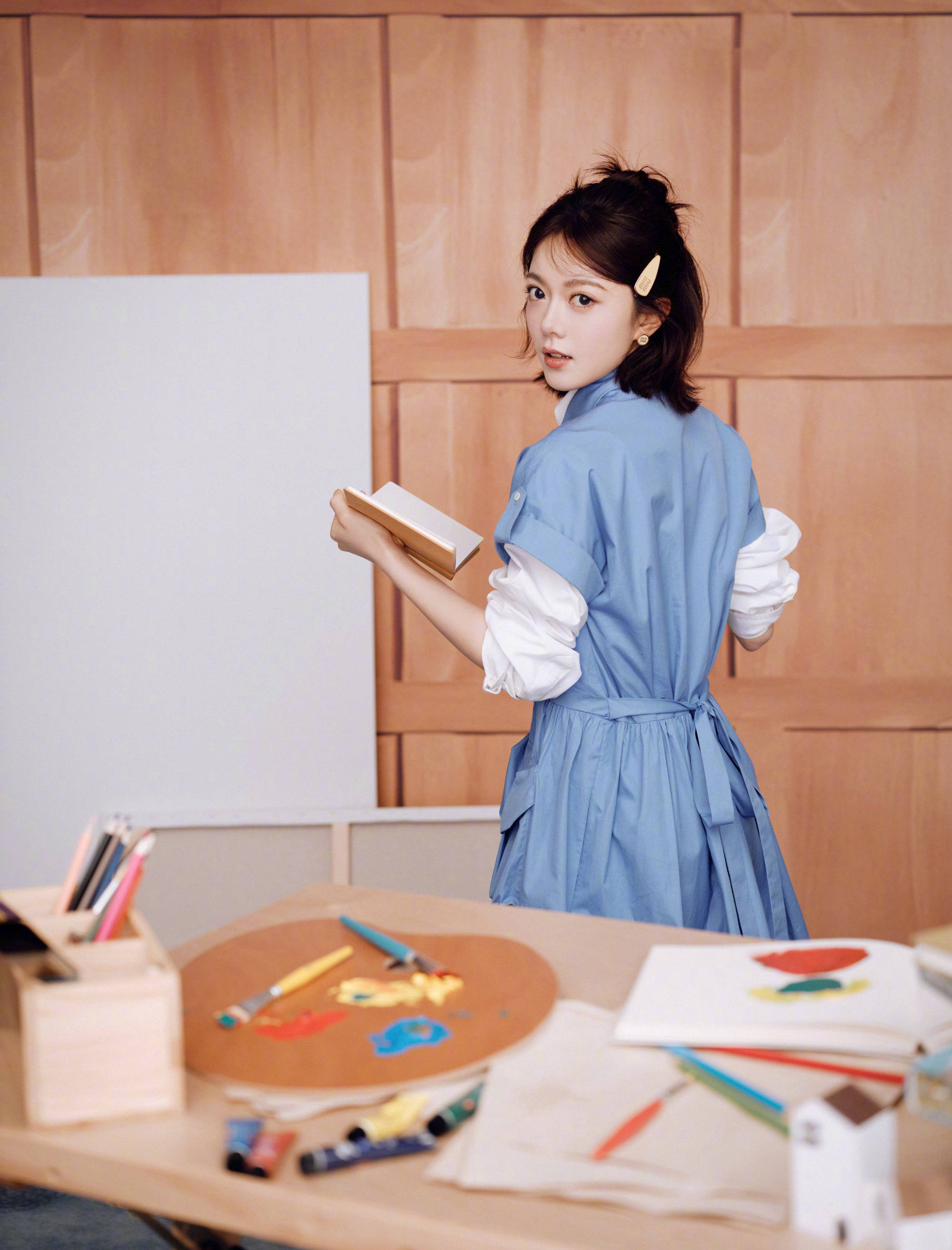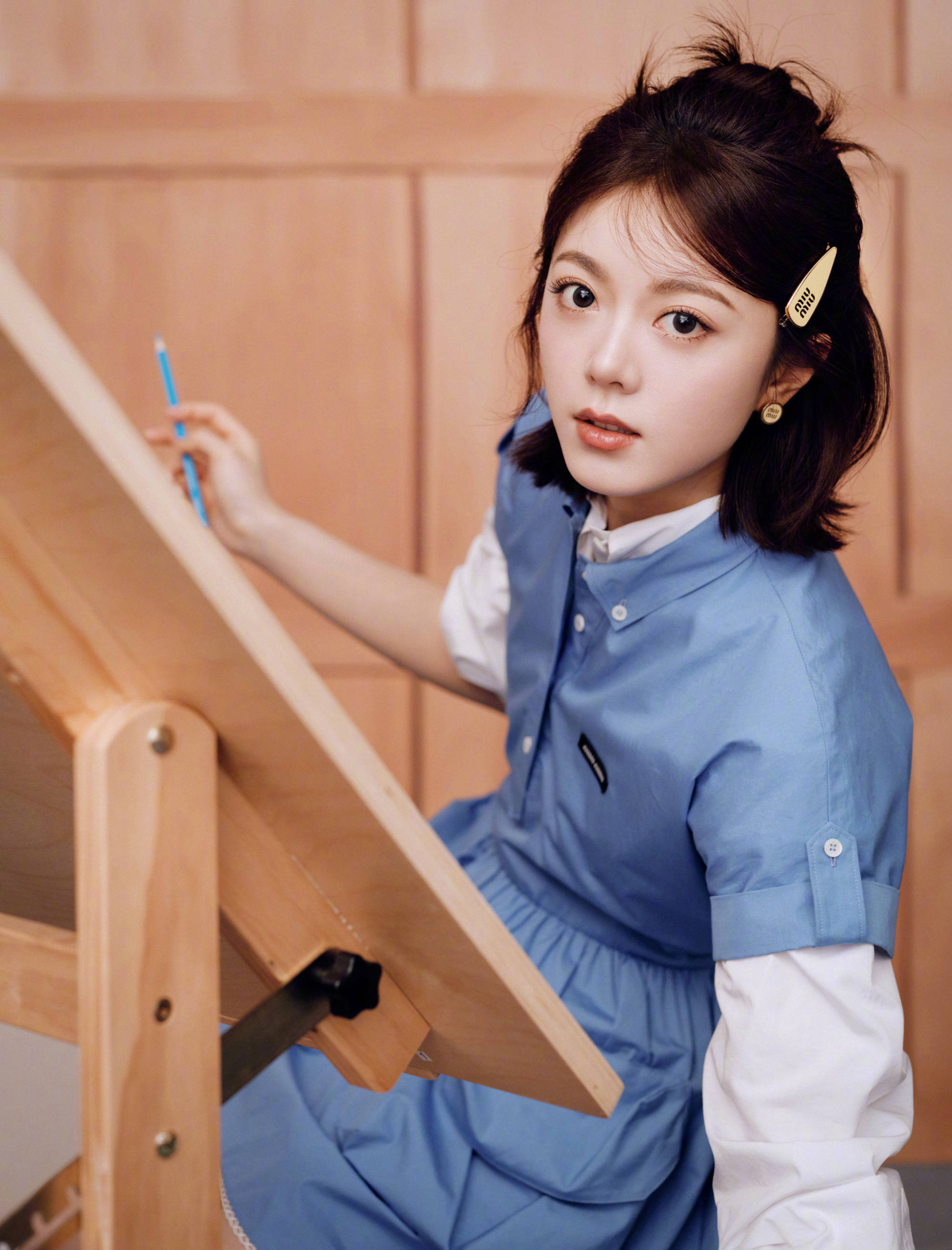 搜狐娱乐讯 近日,赵今麦一组画室写真释出。图中,她穿蓝白叠穿裙,持画笔作画,元气又清新。